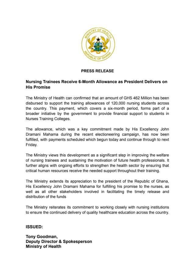 Posted onJuly 18, 2025July 18, 2025inTrending Gov’t disburses GHS 462 million in nursing training allowances